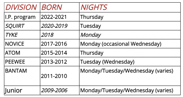 Please note the K.M.B.H.L. tries our absolute best to stick to our schedule. But due to circumstances beyond our control different nights may be required. We try our best to schedule around the other sports in the Kingston area to reduce as many conflicts as possible.